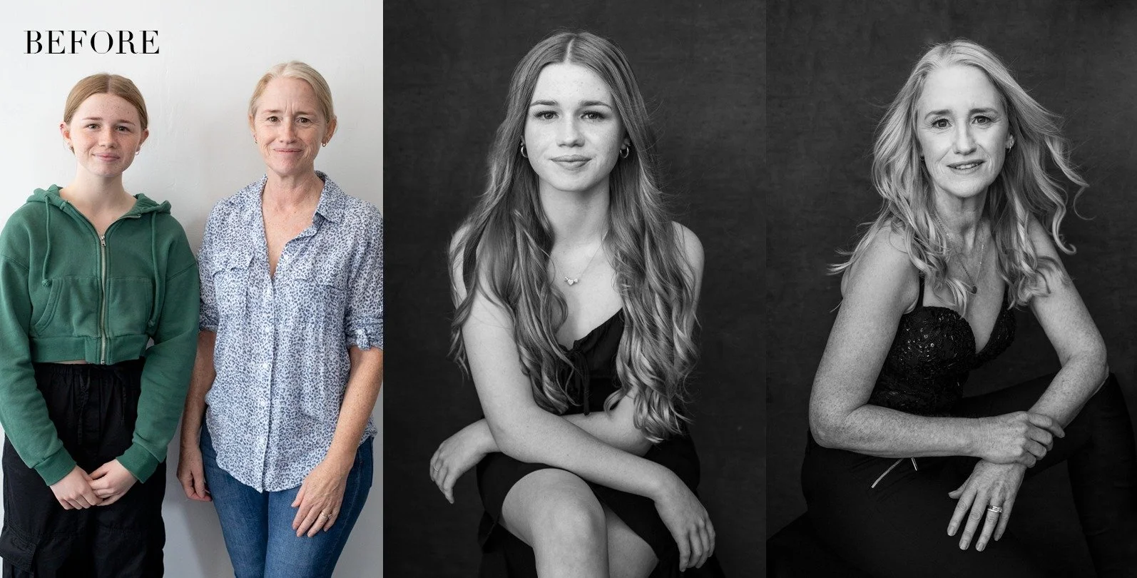 These gorgeous souls are Angela and Addison, one half of a wonderful family. And like many families, we captured causal and fun jeans and white tops for the first look, with dad Gerry and son Ashton included of course. But when it came to the second outfit change they wanted black and white, a look we call Film Noir; dark, dramatic and absolutely timeless.