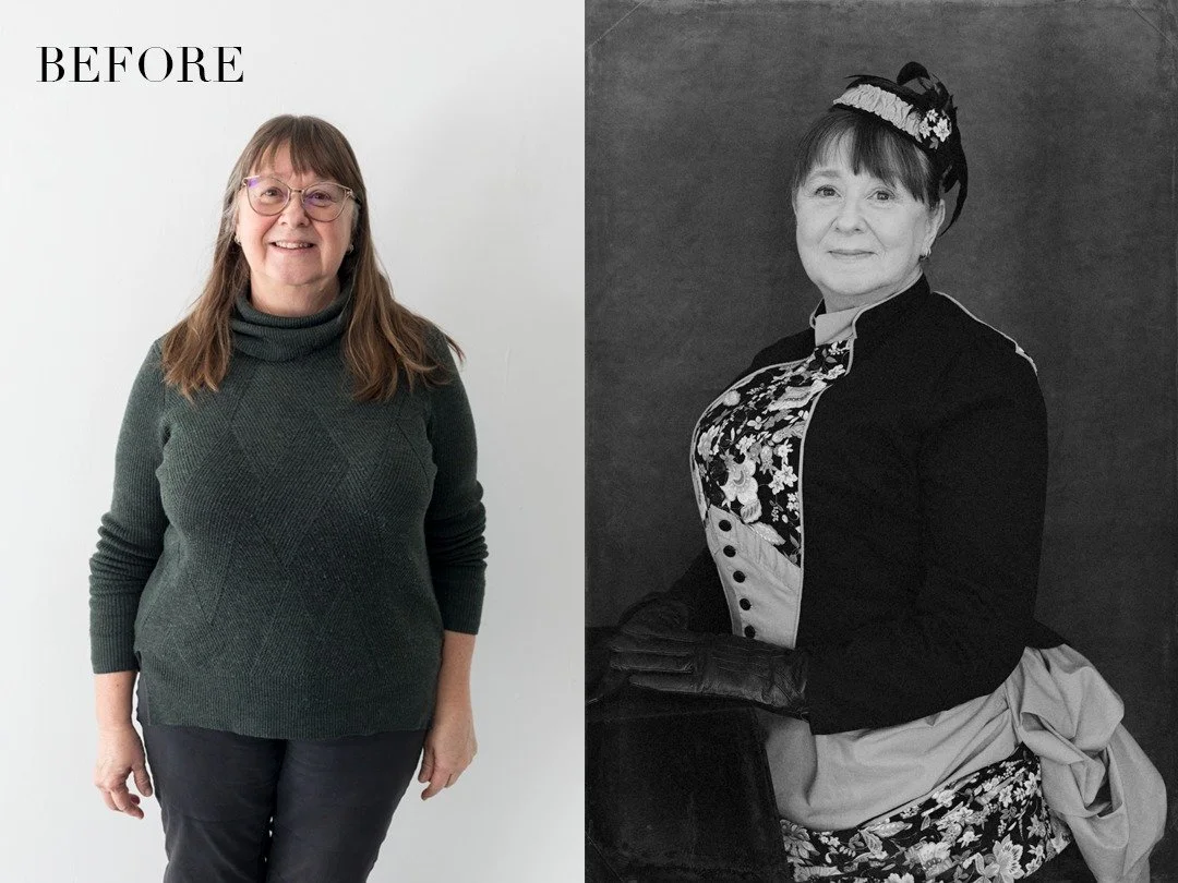 Ever wanted to step out of the pages of your family photo album, to dress in the clothes of someone from the 1880s? This fabulous woman is Wendy. One day, as she was walking past, she popped into the studio with a photo of her great-grandmother and told me that she had re-created the dress in the photograph and that would I be able to capture her in the spirit of her cherished photo.