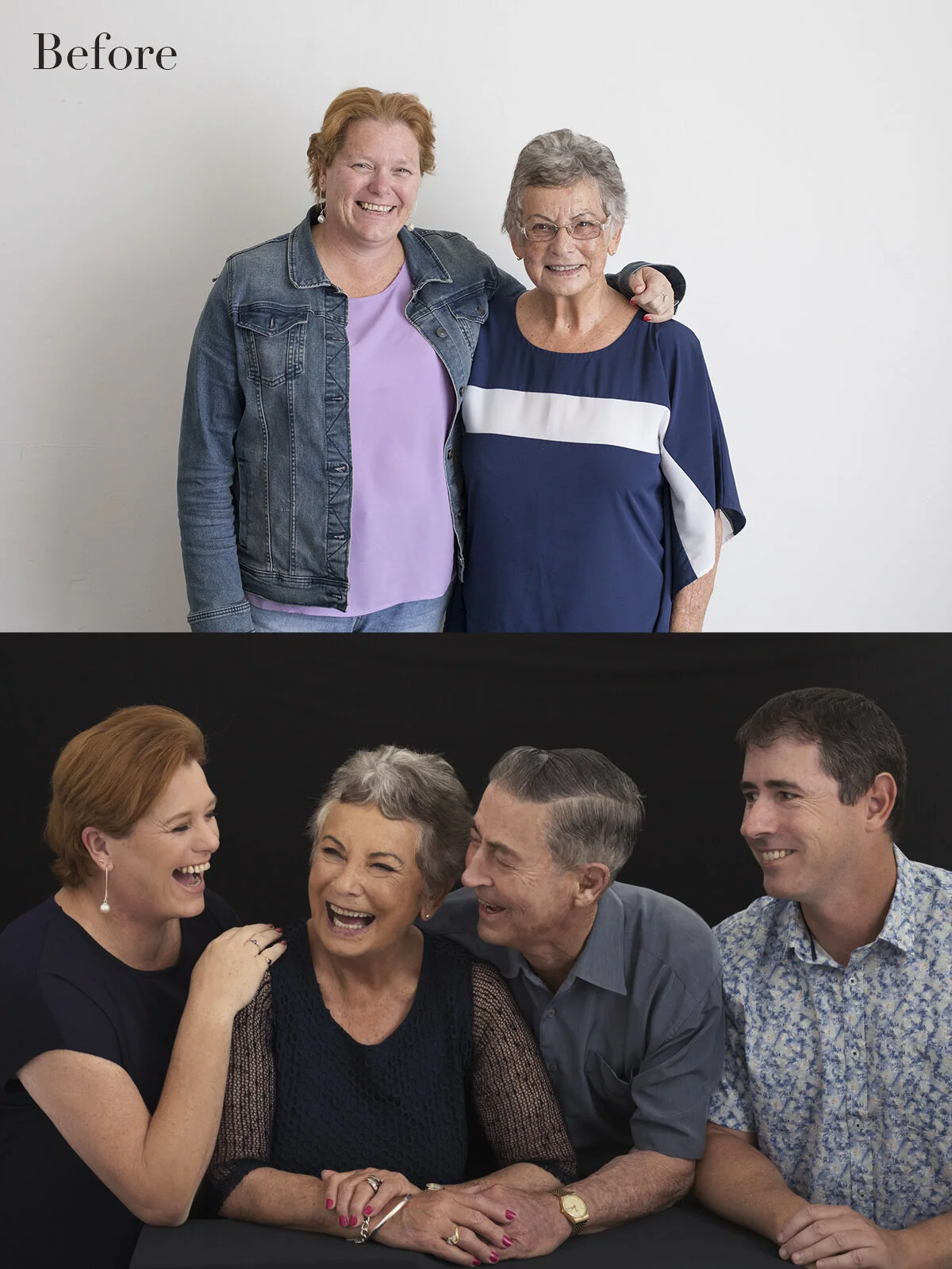 I chose this before and after to celebrate everything that is the joy of family, fun, laughter and silliness. Giggles, tomfoolery and spontaneity. If you listen you can almost hear their laughs, it was such a fun day!